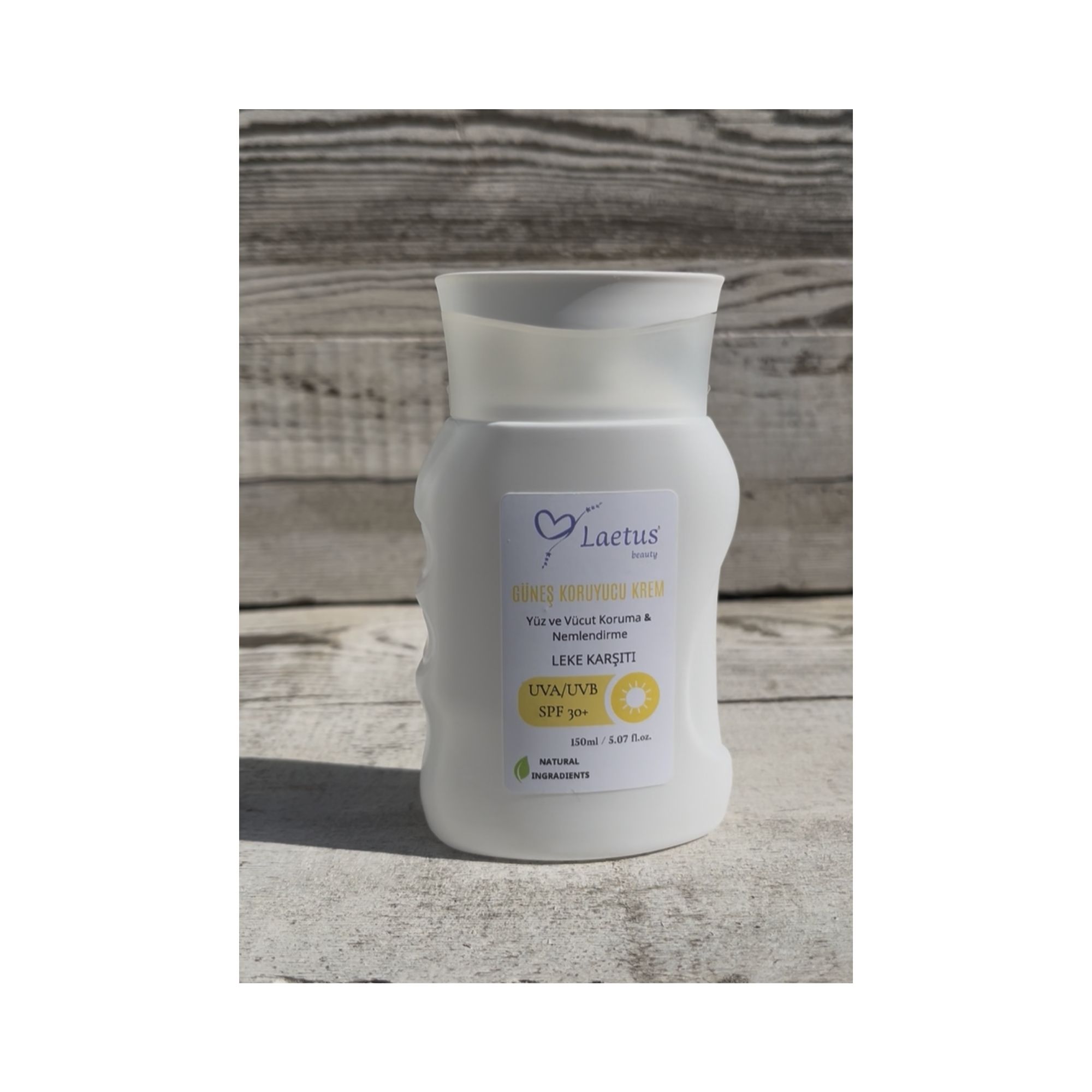 SPF30+ faktörlü güneş kremi, UVA ve UVB ışınlarına karşı cildi korumaya yardımcı olur. Balmumu ve bitkisel yağ içerikleriyle cildin nemlenmesine katkıda bulunur.